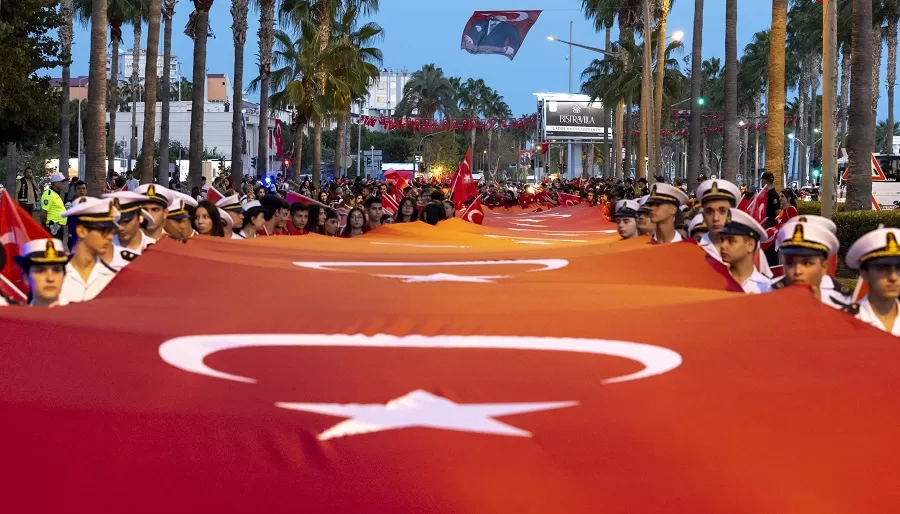 MERKEZ: Mersin’de Cumhuriyet’in 102. yılı coşkusu, 102 metrelik Türk bayrağıyla yapılan “Bayrak Yürüyüşü”yle kutlandı. Detay haberimizde.